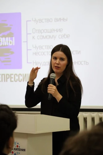 В практической части встречи студенты не только обсудили такие состояния, как депрессия, но и попробовали диагностическую методику, позволившую каждому оценить свою подверженность нестабильным психическим состояниям. Это вызвало живой отклик и множество вопросов к специалисту.