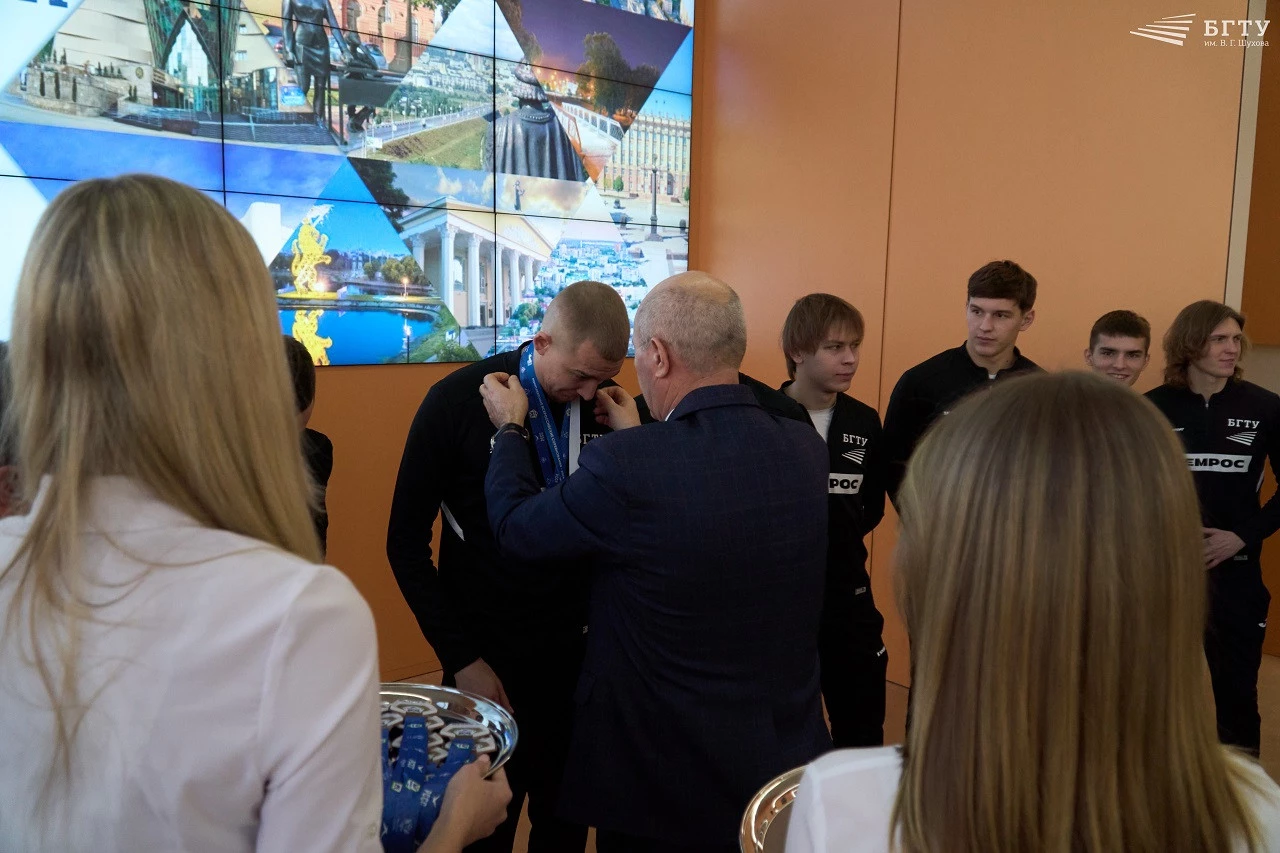 Торжественным моментом стало награждение футбольной сборной БГТУ им. В.Г. Шухова, завоевавшей бронзовые медали в Национальной студенческой футбольной лиге. Вместе с Андреем Стукаловым в церемонии приняла участие Оксана Смаглий, исполнительный директор лиги. Спортсмены и тренер команды получили заслуженные награды, а их успех был отмечен как пример эффективной интеграции спорта в образовательную среду.