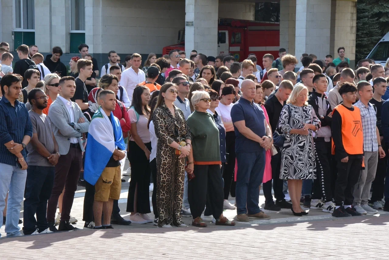 Торжественный митинг открыли проректор по безопасности БГТУ имени Шухова, кандидат юридических наук Владимир Борисовский и заместитель начальника Центра по противодействию экстремизму УМВД России по Белгородской области, полковник полиции Александр Селютин. Также к собравшимся обратились участник специальной военной операции, председатель ДОСААФ Белгородского района Никита Гурный; студент 4-го курса института энергетики, информационных технологий и управляющих систем, председатель студенческого совета по общежитиям, председатель землячества Иордании Фуад Алабабсех; председатель объединённого совета обучающихся БГТУ имени Шухова Михаил Моисеев.